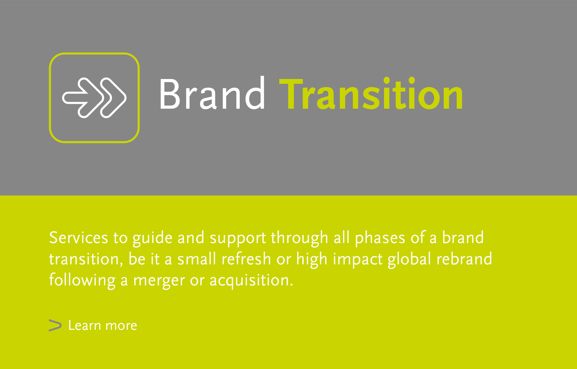Services to guide and support through all phases of a brand transition, be it a small refresh or high impact global rebrand following a merger or acquisition.